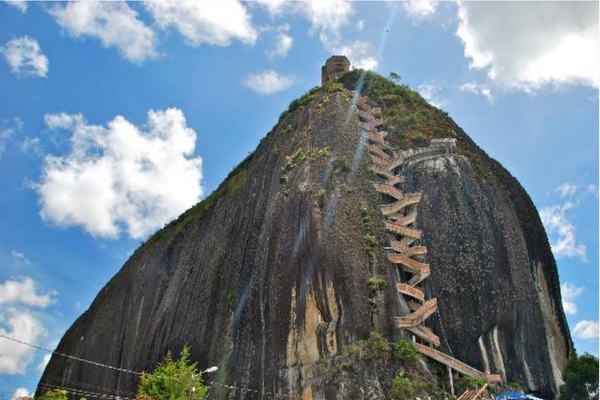 por la población de Nuevo Peñol para arribar a la Piedra del Peñol, un monolito de 229